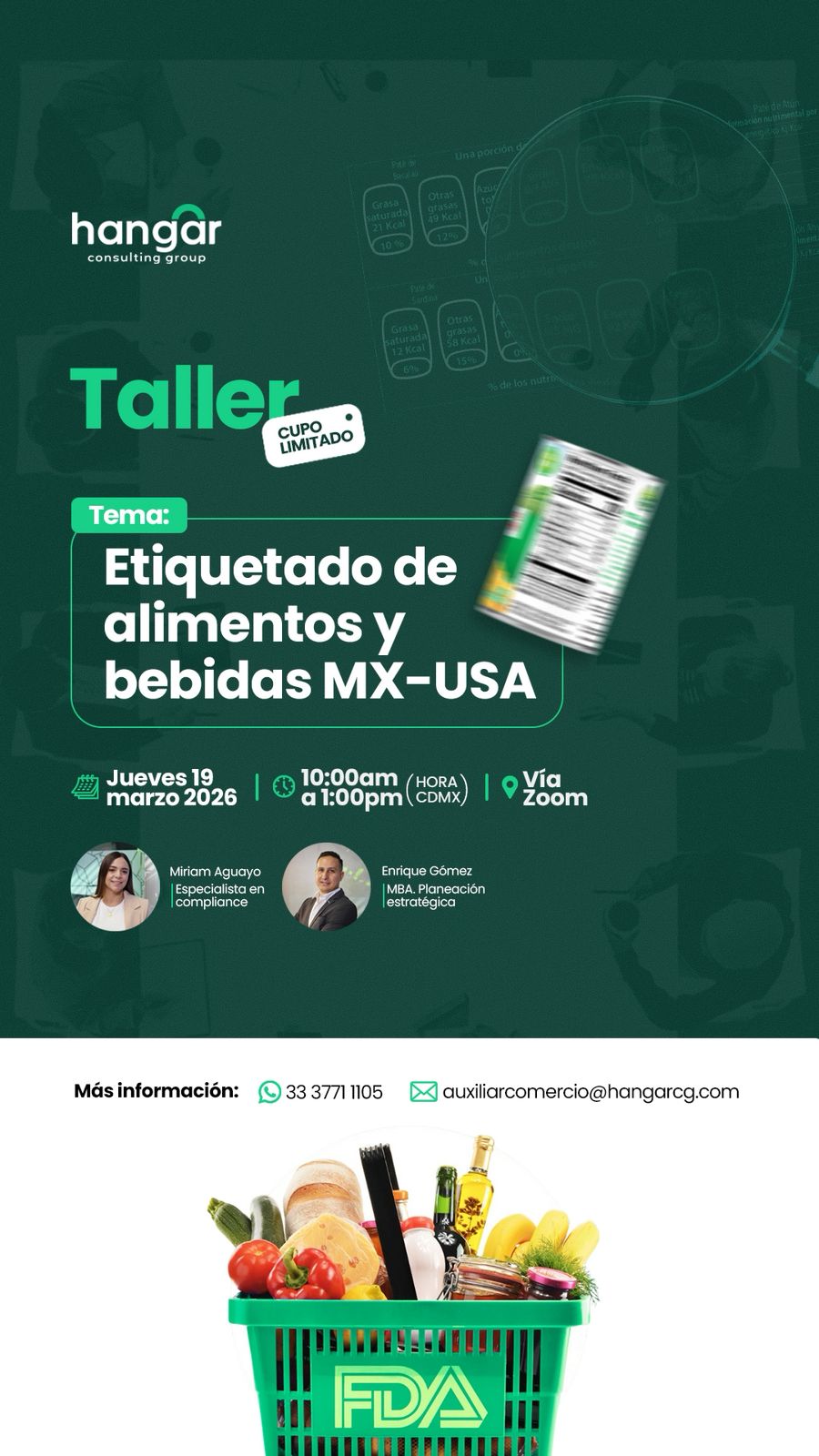 COMCE Sur en colaboración con Hangar Consulting Group te invita a nuestro primer taller práctico del año, "Etiquetado de alimentos y bebidas MX-USA", en donde trabajaremos: