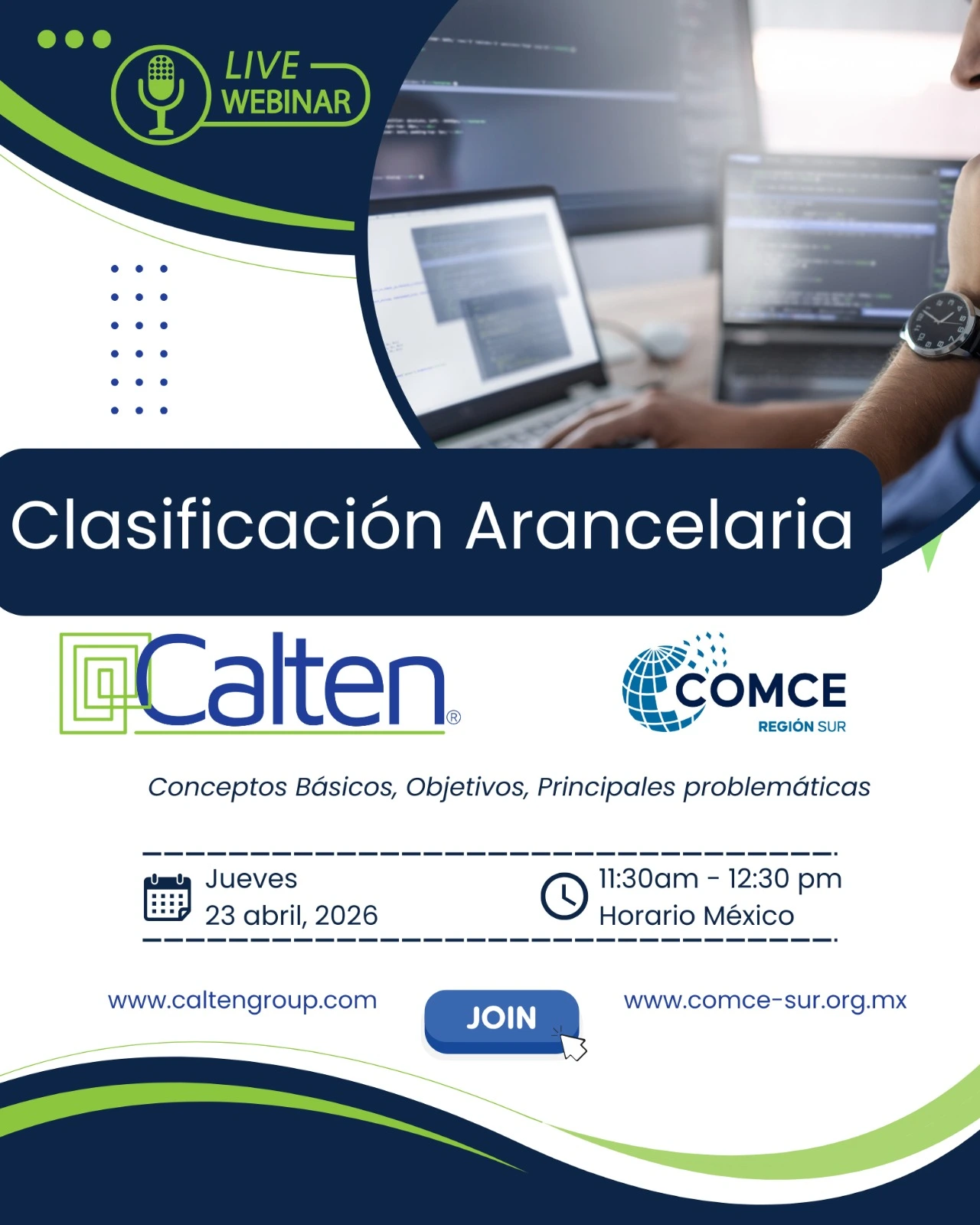 COMCE Sur en colaboración con Calten, te invita a participar en el próximo webinar: Clasificación Arancelaria.